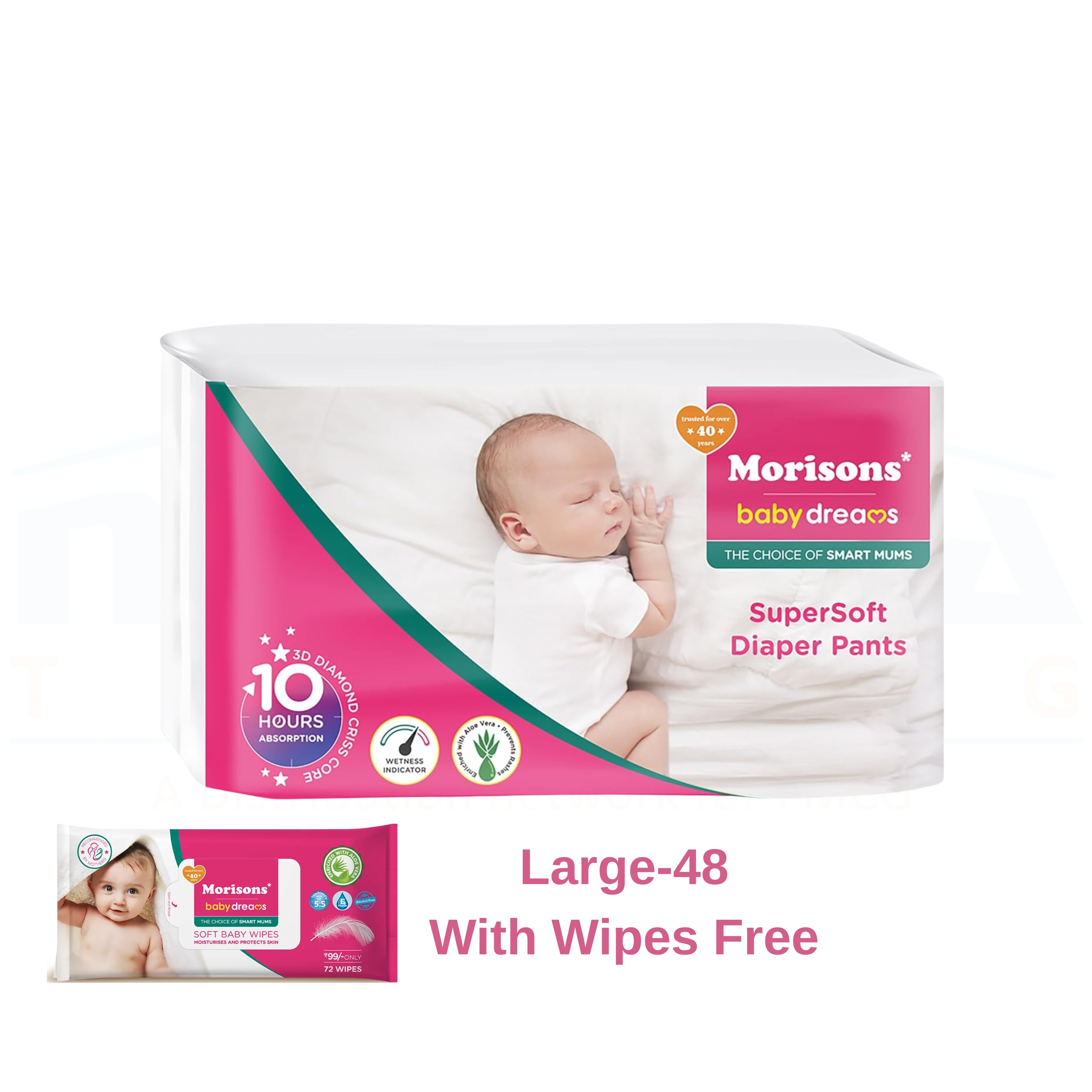 Morisons Diaper Pants Large-48 With MBD Wipes 72's Free [1x6] [INR 699|NPR 1118.40]